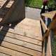 Klædeskabsopbygning hvor en meget spids vinkel gemmes og udnyttes af klædeskabet. Alle elementer malet tone i tone med vægge og paneler.